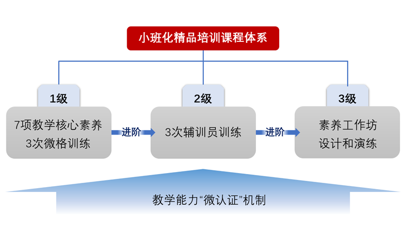培训传播方面,项目打造了3级培训课程和认证体系。通过7项教学核心素养工作坊研习和3次教学微格演练,完成“教学核心素养研习营”的教师可以获得教师教学核心素养认证。在此基础上通过辅训员研习营,可具备担任培训辅训员的资质。而经过最高级培训师研习营后,则可以获得开展教学核心素养研习营的资格。另外还设计了教学能力的“微认证”机制,将培训碎片化、微课化,具备因地制宜地与各学校教师能力提升计划的兼容性,能够更好地适应教师在职学习和终身学习的场景。