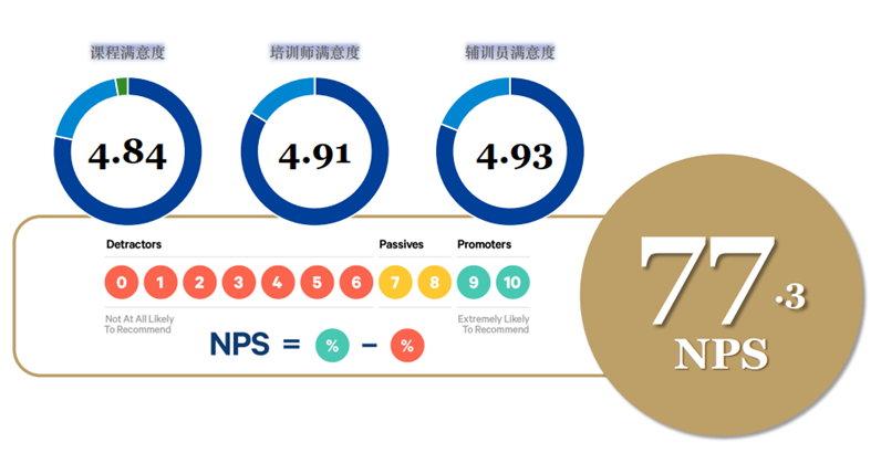 教师教学核心素养(FACULTY)研习营自2022年首次举办以来,已累计举办22期,研习营已受到了参与者的广泛好评。课程满意度平均高达4.84,NPS推荐指数(学员将会向其他教师推荐该课程可能性的指数)达到77.3。