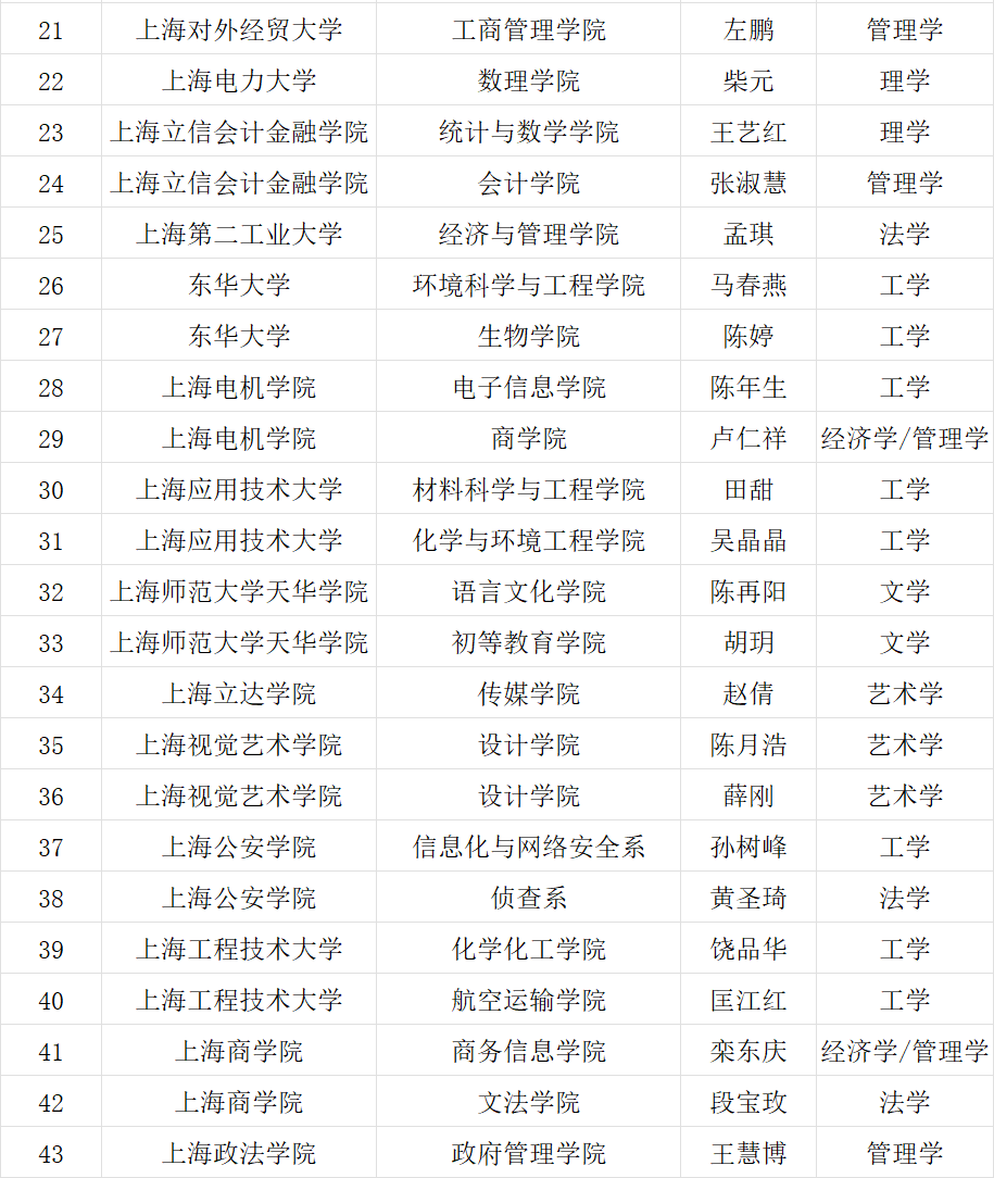 2024学年度上海各高校共计推荐47位教师,经过两阶培训流程后,最终有43位教师完成所有培训模块并通过资格认定,被纳入“上海高校教师教学能力提升试点班”专家库和MATE咨询师库,现将名单公示如下: