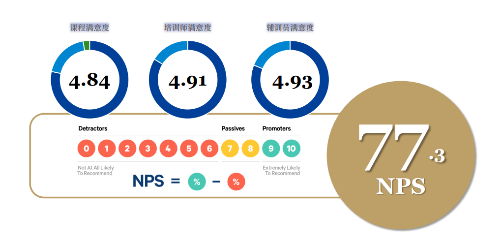 教师教学核心素养(FACULTY)研习营自2022年首次举办以来,已累计举办9期,研习营已受到了参与者的广泛好评。课程满意度平均高达4.84,NPS推荐指数(学员将会向其他教师推荐该课程可能性的指数)达到77.3。